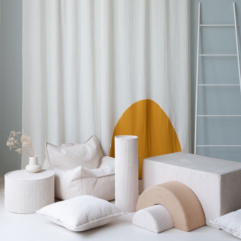 Le coussin roulé Wigiwama offre une touche ludique qui convient parfaitement à un lit d'enfant en tant que complément de décoration.