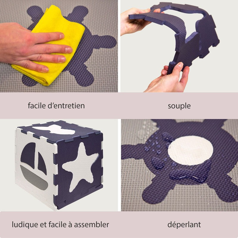 Le tapis de jeu en mousse OCEAN WORLD se compose de 12 dalles de mousse 30x30cm - quatre fois la taille des dalles conventionnels. Parfait pour ramper et jouer à la maison ou une utilisation en extérieur.