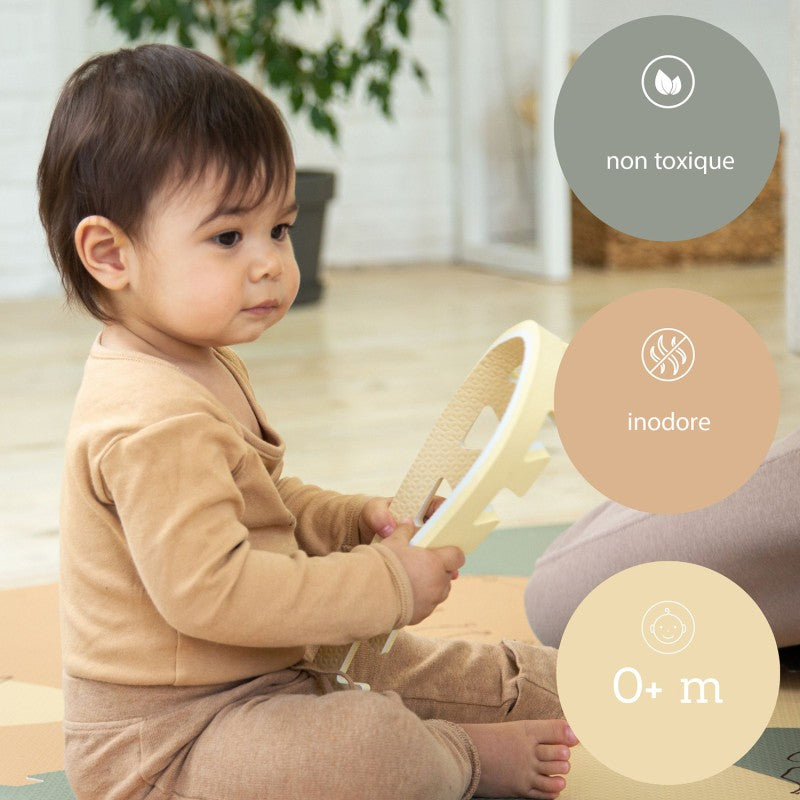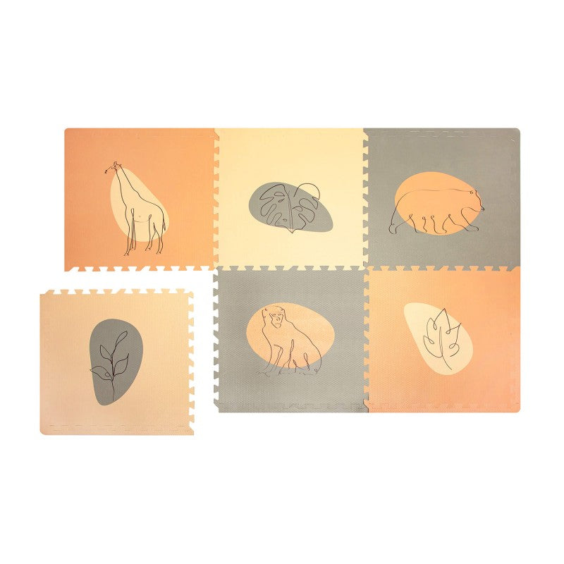 Le tapis de jeu en mousse JUNGLE est à assembler soi-même grâce à ses 6 dalles. Une surface de jeu sûre et confortable pour votre enfant, où toutes les acrobaties et roulades se termineront en douceur!