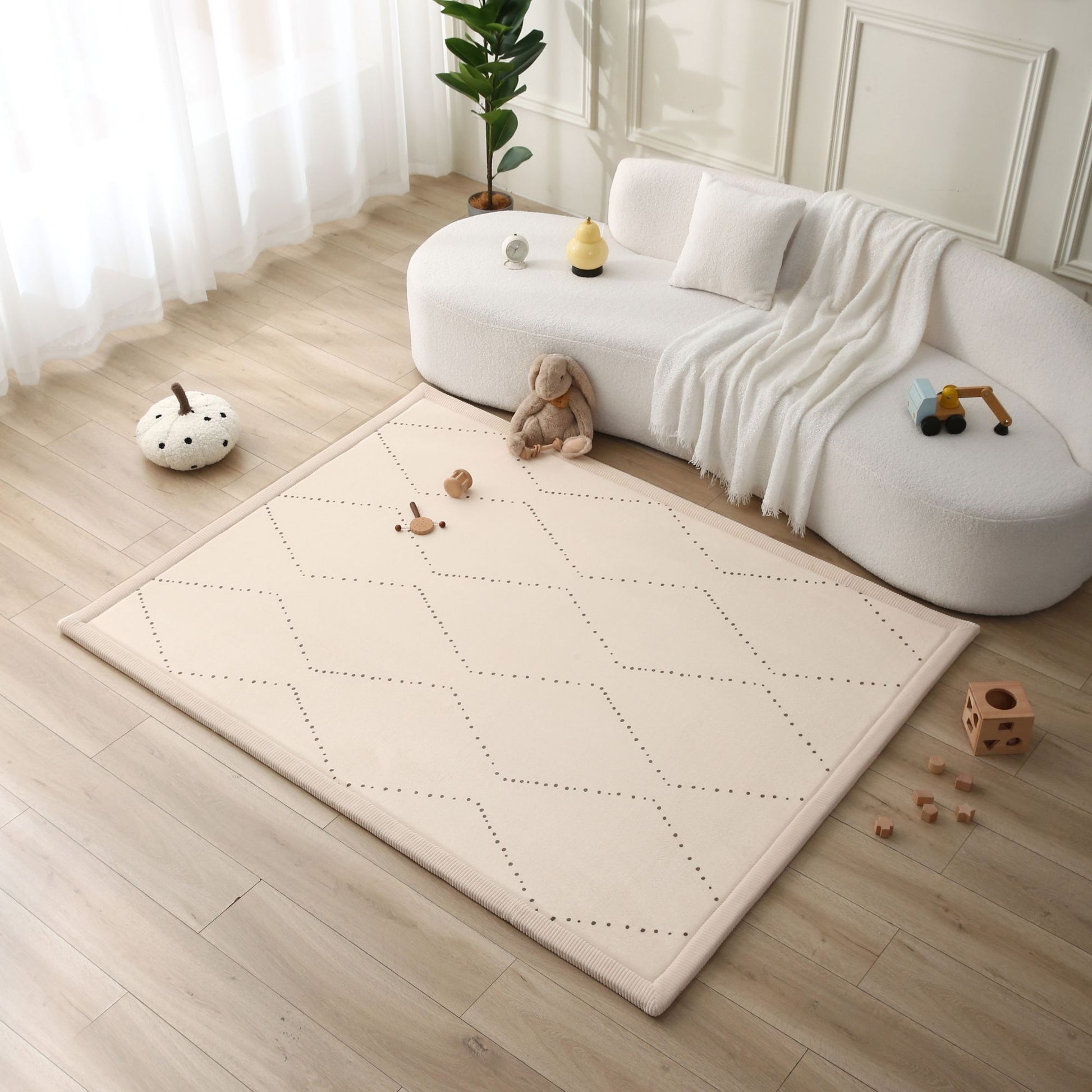 Découvrez CLOUD PLAY MAT, un tapis au design intemporel et unisexe, parfait pour s'harmoniser avec votre décoration d'intérieur tout en offrant une atmosphère confortable et apaisante à votre enfant.